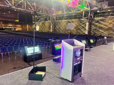 Monitors can be used in addition to the glass presidential teleprompter system for coverage of both areas.